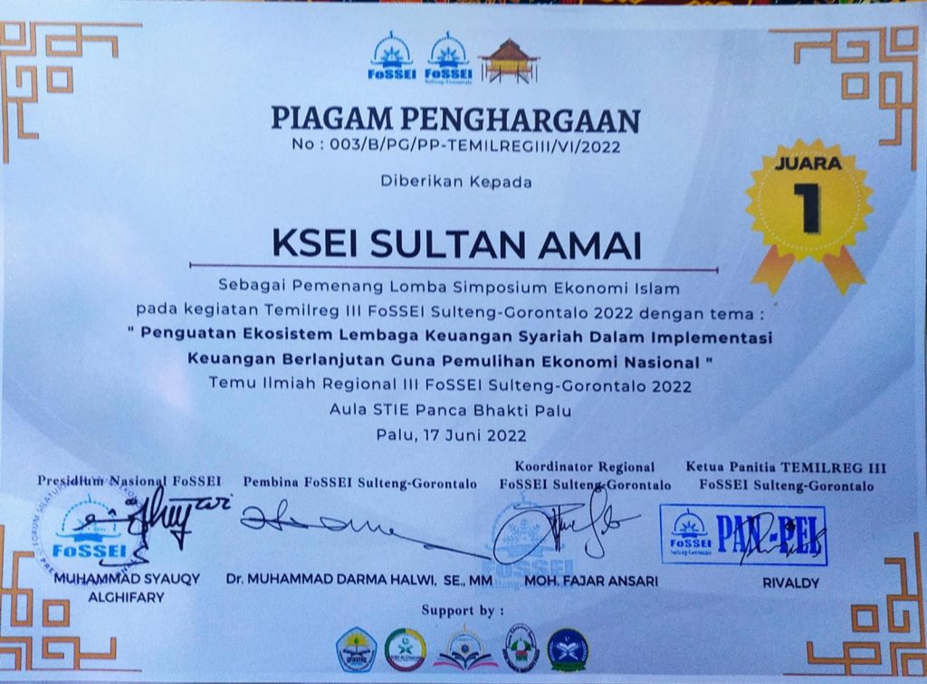 Program Studi Akuntansi Syariah, Fakultas Ekonomi dan Bisnis Islam, IAIN Sultan Amai Gorontalo turut berpartisipasi dalam kegiatan Temu Ilmiah Regional Forum Silaturahim Studi Ekonomi Islam (TEMILREG FoSSEI) Regional Sulawesi Tengah–Gorontalo pada bidang akademik. Kegiatan yang diselenggarakan pada tahun 2022 ini merupakan forum ilmiah yang mempertemukan mahasiswa dan akademisi ekonomi Islam dari berbagai perguruan tinggi untuk memperkuat jejaring intelektual serta meningkatkan kualitas kajian ekonomi syariah di tingkat nasional.